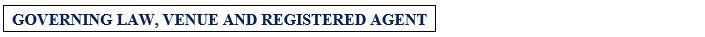 This Agreement is made and entered into in the State of Texas, shall be performed within the State of Texas, and shall be interpreted, enforced, and governed by the laws of that state without regard to the conflict of laws. Venue for any dispute between the parties shall be in Harris County, Texas. The Company’s Texas agent authorized to accept service of process is XQ CPA PLLC. 11511 Katy Freeway. Suite 630. Houston, TX 77079